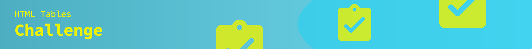 Tables are great for showing organized data. Tables are wrapped inside the <table> element.